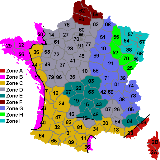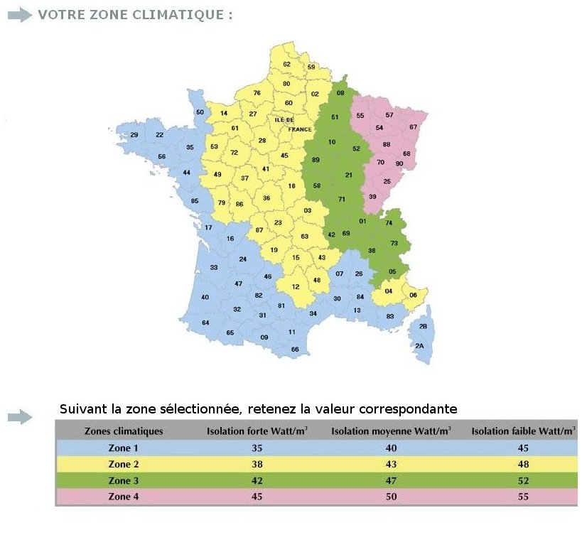 B) Prenez ensuite l'une des valeurs correspondante à votre zone climatique de résidence à l'aide de l'image au dessus.