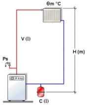 Le circulateur, également appelé "pompe", est un appareil connecté sur le circuit départ d'une chaudière et permettant d'établir la circulation de l'eau dans l'ensemble de l'installation. Afin de choisir un circulateur adapté à une installation donnée, il est impératif de prendre en compte les pertes de charges liées au radiateur le plus éloigné (défavorisé) de la chaudière. En effet, la pompe doit être en mesure de vaincre ces pertes de charge,ce qui assure ainsi un fonctionnement régulier dans l'ensemble de l'installation. La formule suivante permet de définir la puissance du circulateur:
